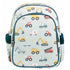A Little Lovely Company Backpack, Insulated Front Pocket - Light Blue with Vehicles