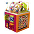 Large Fantastic activity cube with 5 sides full of fun and many hours of great play. It features doors that can be opened, a motor skills maze packed with fun and challenges, beautiful animal pictures that spin (there are no letters, as these don't suit the Nordic languages), a 'zig-zag' track to move up and down, and entertaining 'wheels' that can be spun again and again.