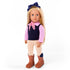 Meet Presley – a delightful Our Generation doll with plenty of style and personality! Presley is ready for new adventures in her classic riding-inspired outfit: a pink shirt with a dark blue vest, light leggings, and brown riding boots with charming details. The dark blue bow in her hair and the pink scarf add an elegant touch that will captivate any young doll enthusiast.