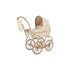 The Minnie doll pram from Konges Sløjd is a charming vintage-style pram perfect for little ones aged 3 and up. Designed with large wheels for stability and ease of pushing, it features quilted fabric with elegantly curved edges on the cover. The frame is made of metal and equipped with soft, cushy handles. Included is a soft mattress and a padded storage basket beneath the crib, ideal for doll clothes and accessories. Additionally, a small bag is attached to the handlebar.